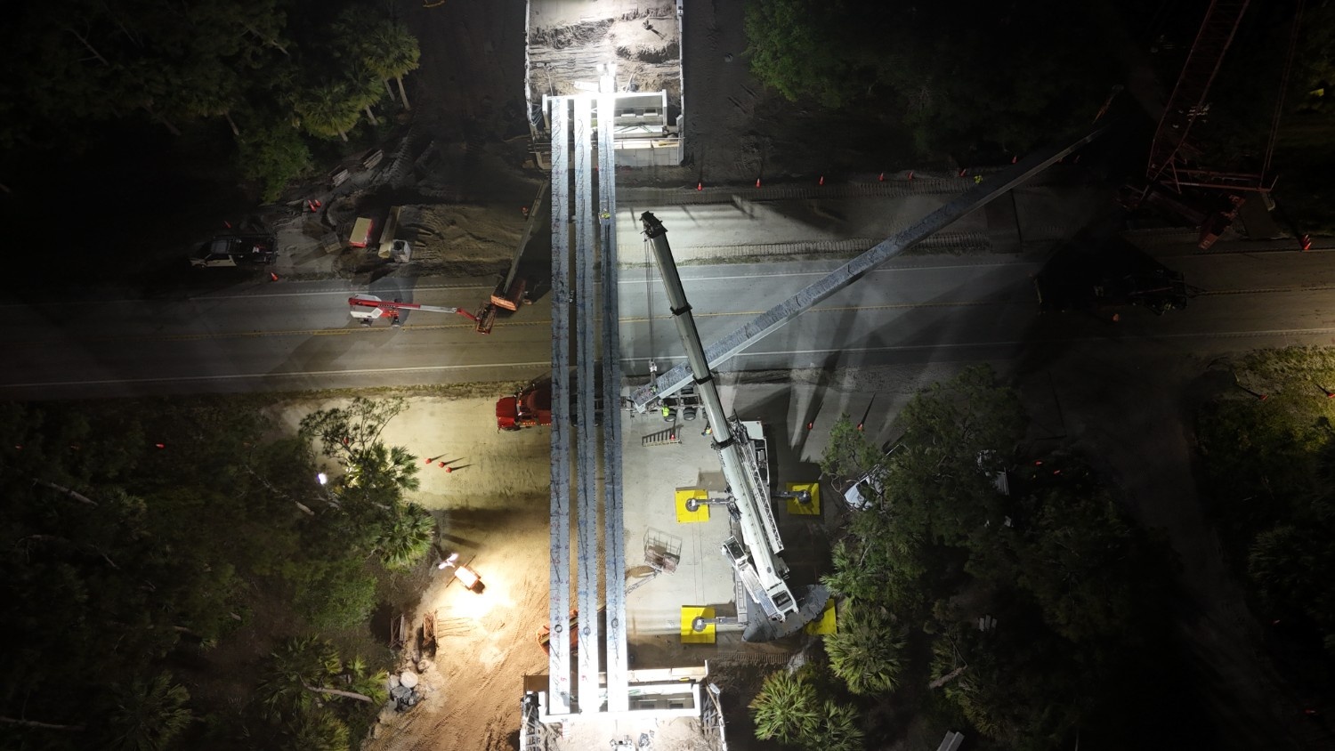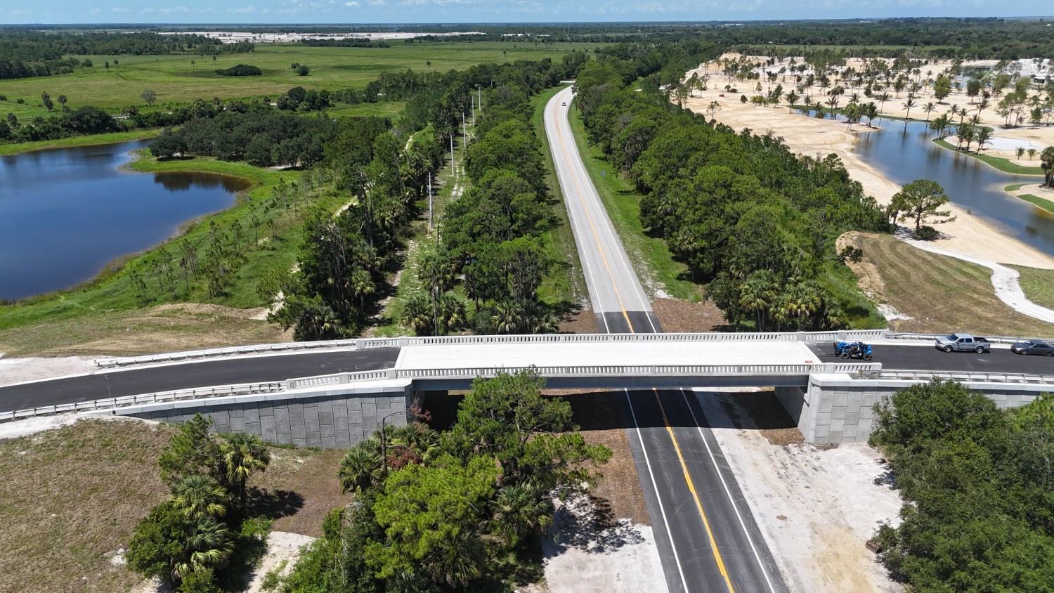 The new bridge measures approximately 182 feet in length by 40 feet in width and includes two 20-foot reinforced concrete approach slabs, as well as roughly 600 linear feet of new roadway construction on each side. Cone & Graham, Inc. provided full design services through licensed professionals, coordinating closely with the project architect, engineers, and jurisdictional agencies to meet applicable FDOT and local permitting requirements.